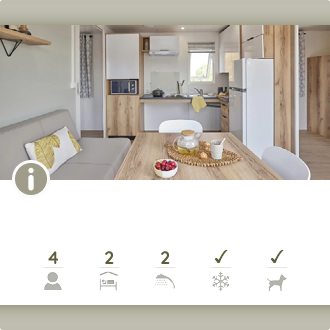 Le nostre case vacanza a Porto-Vecchio combinano la modernità con il fascino mediterraneo. Le nostre confortevoli case mobili e gli chalet sono dotati di aria condizionata, terrazze private, cucine completamente attrezzate e arredate con gusto.